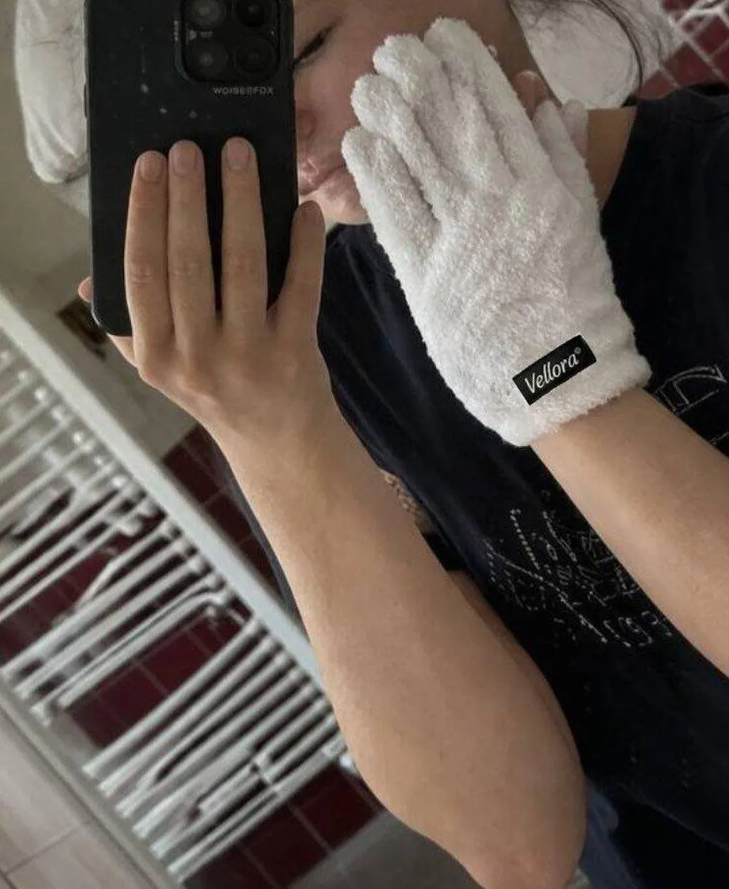 • Használat: Nedvesítsd be langyos vízzel a kesztyűt, majd gyengéd, körkörös mozdulatokkal távolítsd el a sminket. Nincs szükség lemosó tejre vagy micellás vízre.
